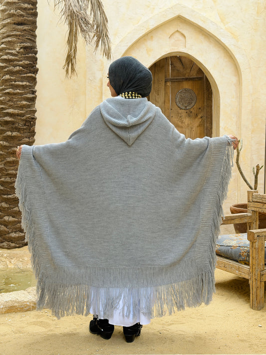 نَفَس — Nafas Tassel Knitted Cape in Grey