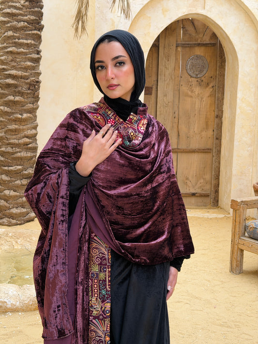 تَجَلِّي — Tagalli Luxury Crushed embroidery Velvet Cape " burgundy "