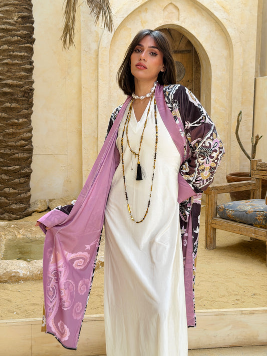 أَلْفَة —Alfa Elegant Paisley Velvet Kimono"pink "