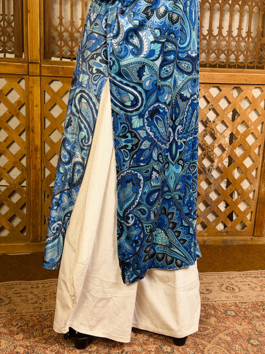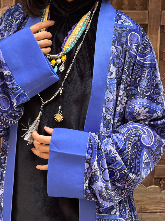أَلْفَة —Alfa Elegant Paisley Velvet Kimono " blue "