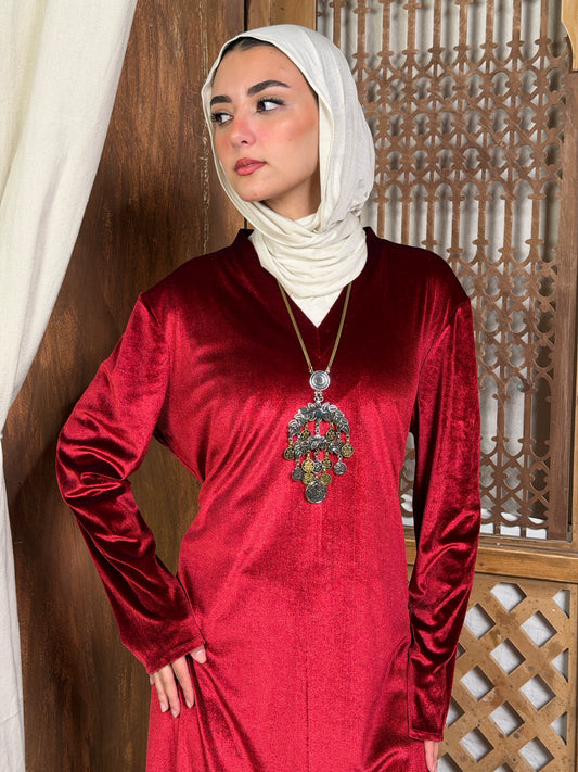 Lamsa - لَمْسَة Velvet Dress with adjustable belt"red"