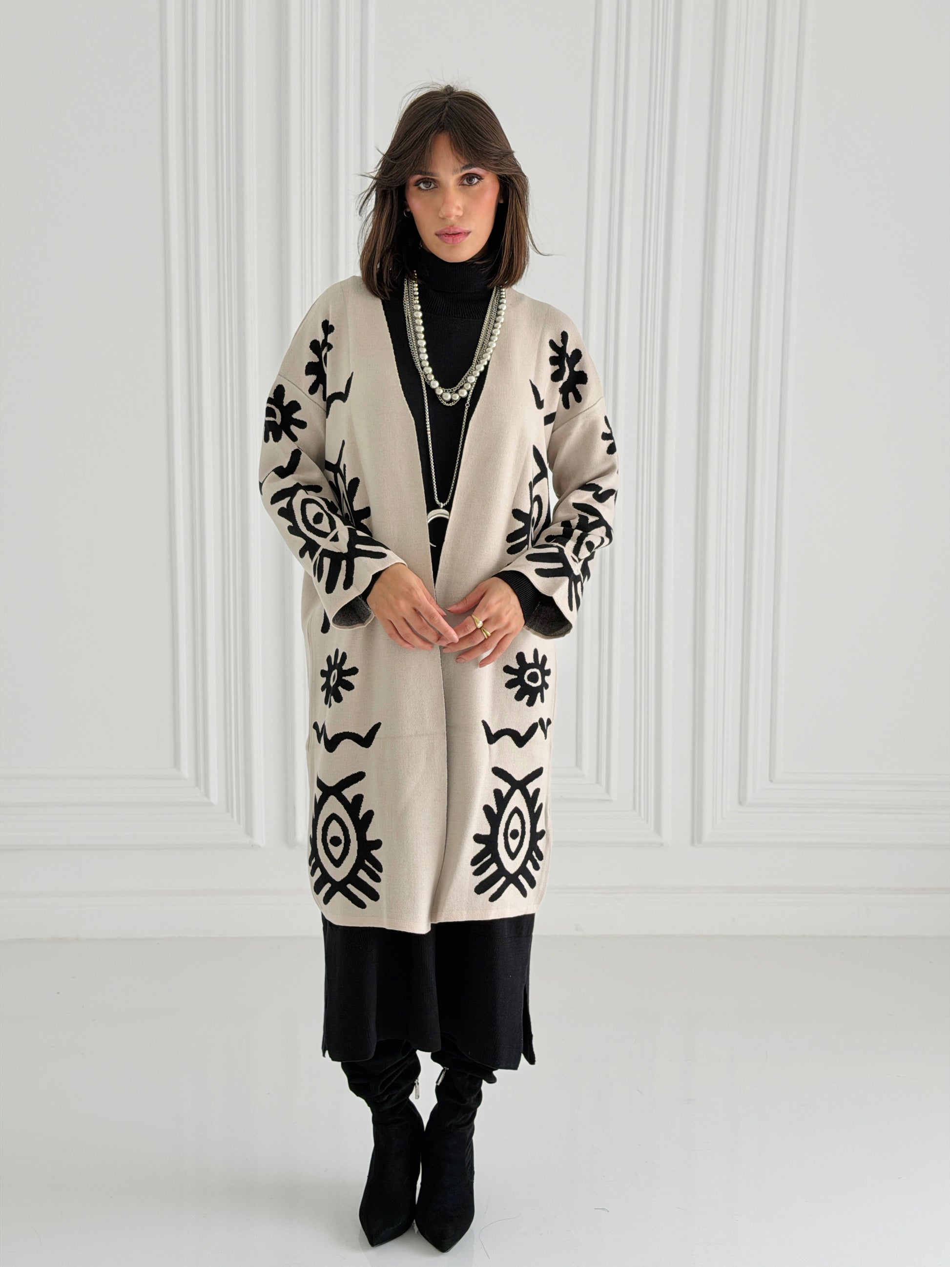 Boho Knitted coat In Off-White