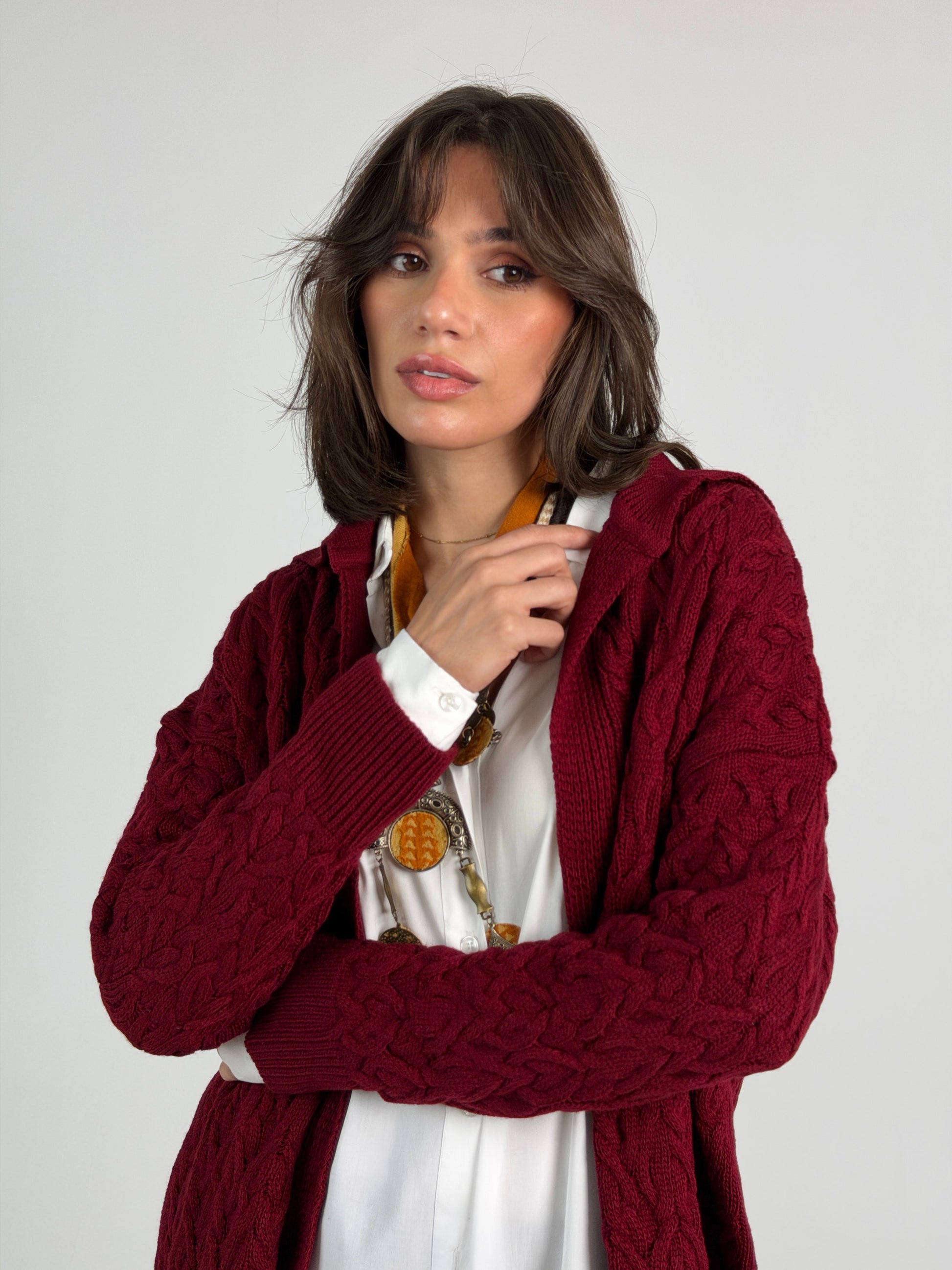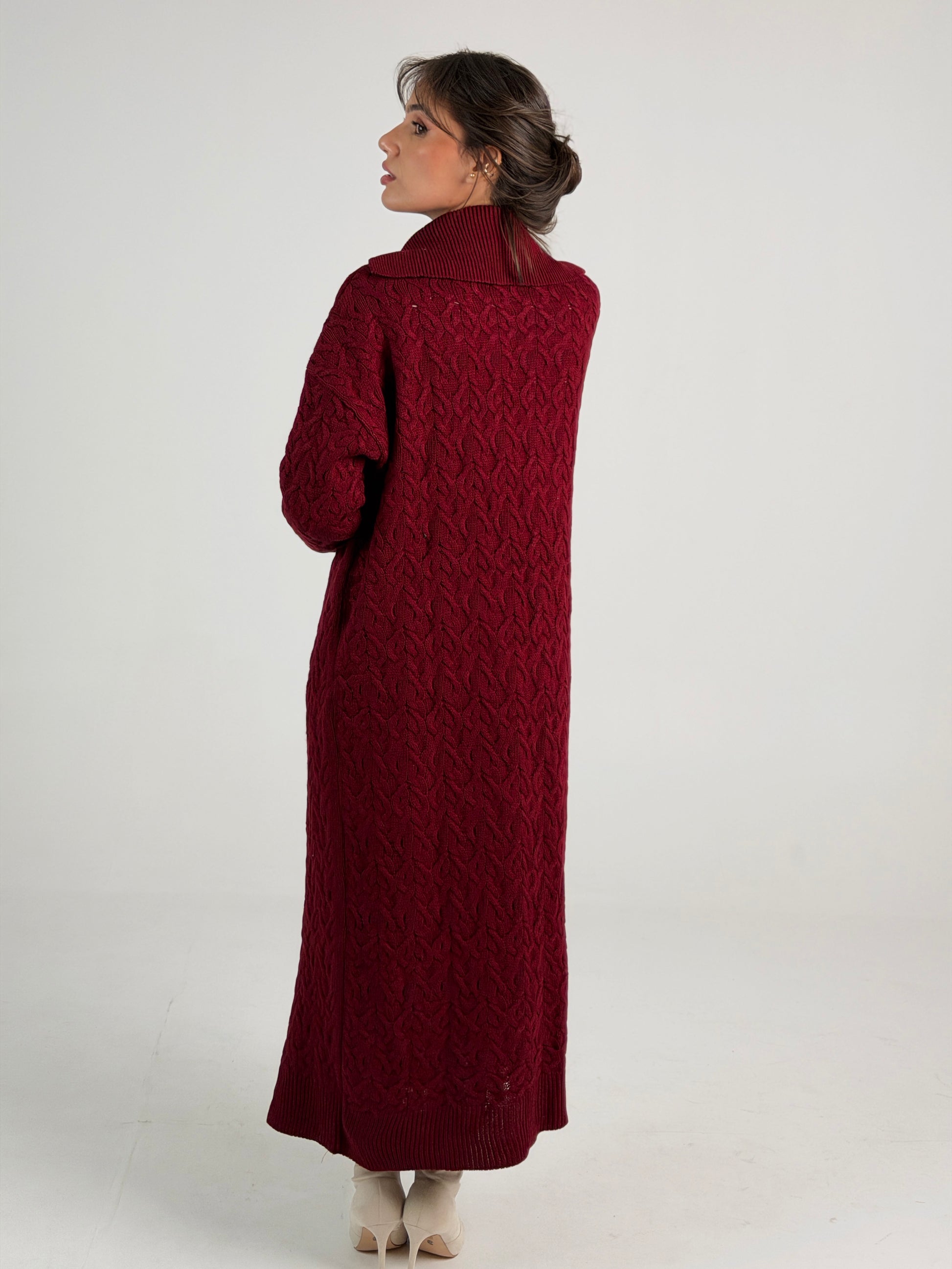 Braided Dreams Knitted Cardigan-Dark Red